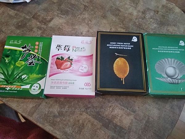 Набор из 10 тканевых масок: увлажняющая маска c гиалуроновой кислотой , маска с шолком , Маска для лица со спирулиной и центеллой , с экстрактом граната, с экстрактом алоэ, с экстрактом клубники, с эссенцией золота 24k, маска с апельсином и гиалуроновой кислотой, "жемчуг", медоваяв каждой коробочке по 10 масок . Они очень бомбезные срок годности выбит на каждой маске и коробочке до 2024 года вышлю фото