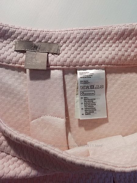 Юбка светло-розового цвета бренд H&M .Юбка застегивается сзади на потайную молнию.Замеры ПОТ-44см,длина вместе с поясом-65см. Бедра -свободный крой. Бирка повреждена(такую покупала).Надевала 1 раз.Состав: 83% полиэстер, 17% вискоза