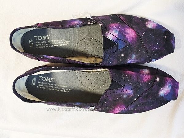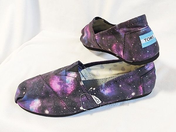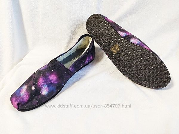 Мокасины женские эспадрильи Toms (Размер 41 (USA W10))Летняя, облегченная модель из льняной ткани расцветки галактика. Подкладка хлопковая, задник укреплен. Стелька мягкая, анатомическая, верх из х/б. Подошва из прорезиненного материала.