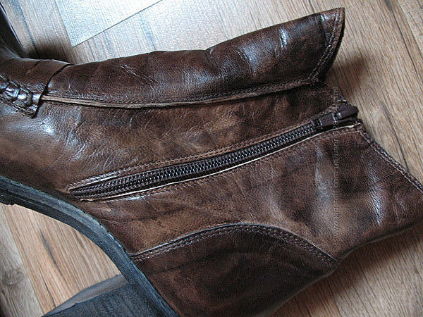 Кожа мягкая, неравномерного окраса (ботинки по окрасу передней стороны немножечко отличаются).