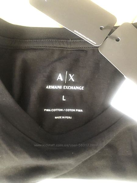 Продается красивенная футболка Armani Exchange оригинал из новой коллекции,очень приятная на ощупь , перешлю Новой почтой за свой счет, оплата на карту ПриватбанкаЗамеры длина по спинке-63см, ширина под мышками-48 см, плечи-39, ткань немного тянется, размер указан Л но по факту М, так же есть в наличии фиолетовая