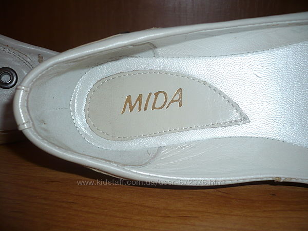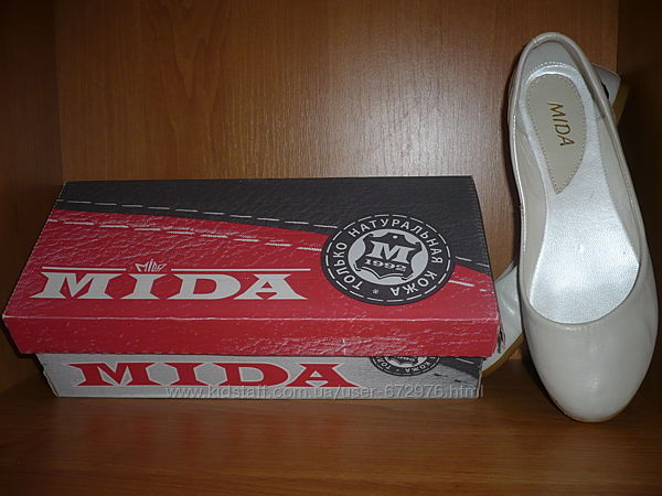 Новые кожаные балетки Mida р. 36 по стельке 23, 5 см молочного цвета.Идут в родной коробке. Производитель Украина. На самой обувке указан р. 37, но, как по мне, маломерят на пол размера-размер.