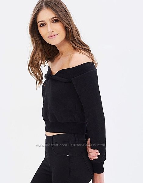 Черный укороченный свитшот из мягкого толстовочного трикотажа от британского бренда LOST INK . Модель на байке, имеет V-образный вырез и рукав-реглан.Размер - 36 евро / S