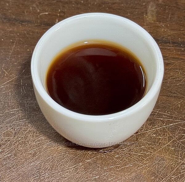 Чай - шу классического вкуса. Прямой и ровный без загадок. Насыщенный, но не нефть. Перезаварить его вряд ли получится, всё равно остаётся мягким, не горчит. Тёмный коньячный цвет. Чистый, без пыли и взвеси в настое. Вкуса пуэрной кучи нет.