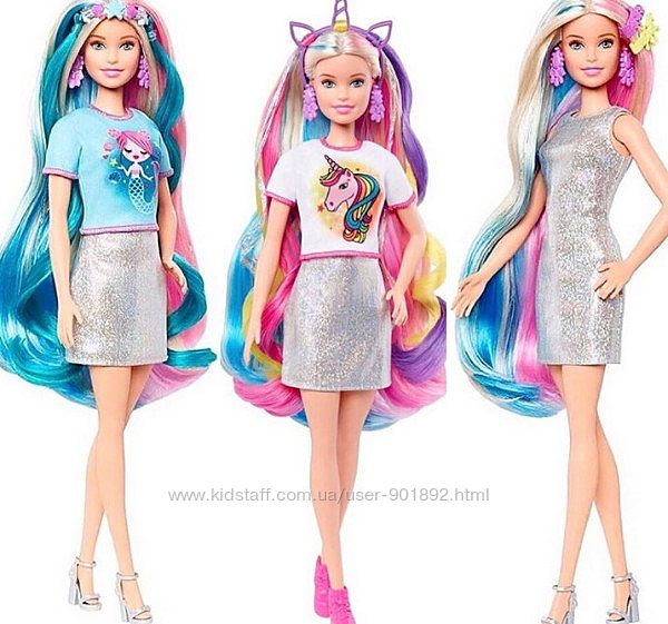 Новая тематическая кукла Барби (Barbie Fantasy Hair) - это все о волосах! Одна кукла дарит сразу много образов: просто Барби, единорог или современная русалка? Преобразите ее!