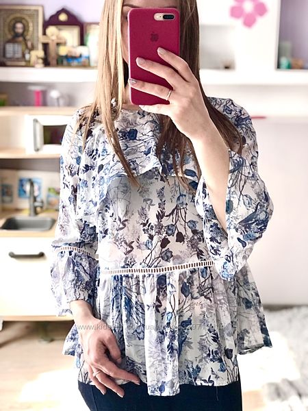 Подробное описание: Блуза женская фирменная нежная летняя белая легкая прозрачная с рюшами
