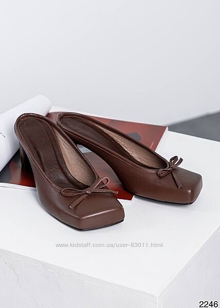 Подробное описание: Стильные кожаные босоножки, шлёпки на каблуке