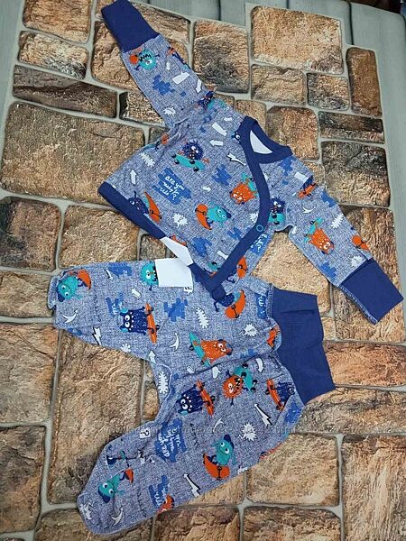 Распашонка и ползунки и шапочка комплект. в наличии разные цвета комплектов стопроцентный хлопок трикотаж.Производство Украина.