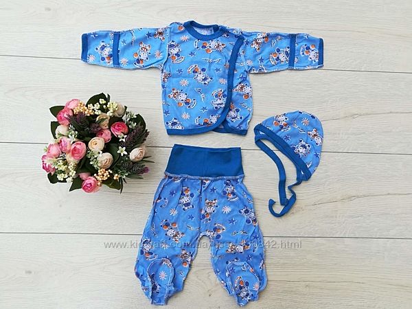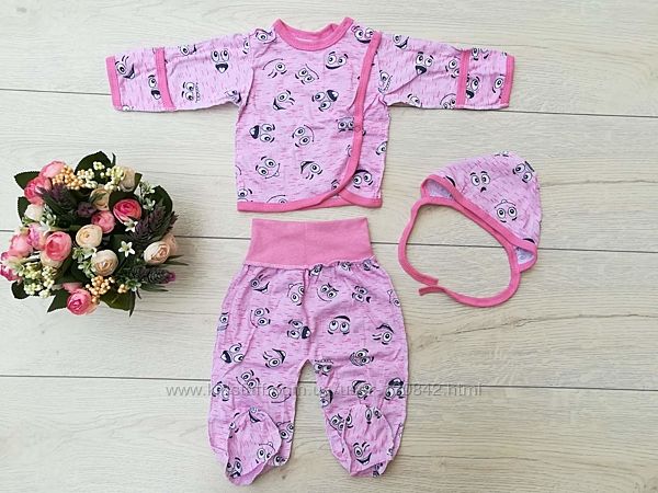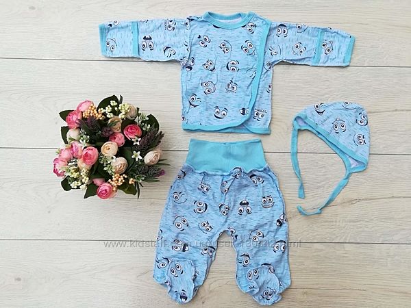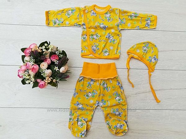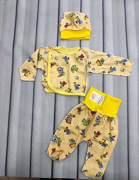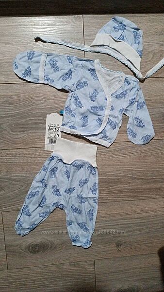 Распашонка, ползунки и шапочка комплект для новорожденного