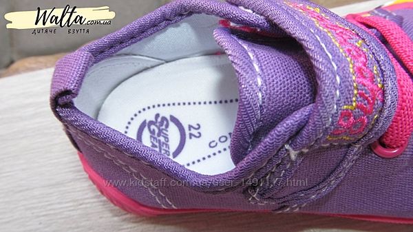 Новые оригинальные текстильные кеды Венгерской фирмы SuperGear. На липучке, которая помогает фиксировать ножку +шнуровка-обманка. Стелька ортопедическая текстильная, вынимается.Отличный вариант для прохладной погоды весной, летом, осень. Подходят как вариант на физкультуру в садике. Легкие. Подходят больше на ножку среднюю или полненькую с высоким подъемом. Если ножка худенькая макс запас на вырост 2-3мм.