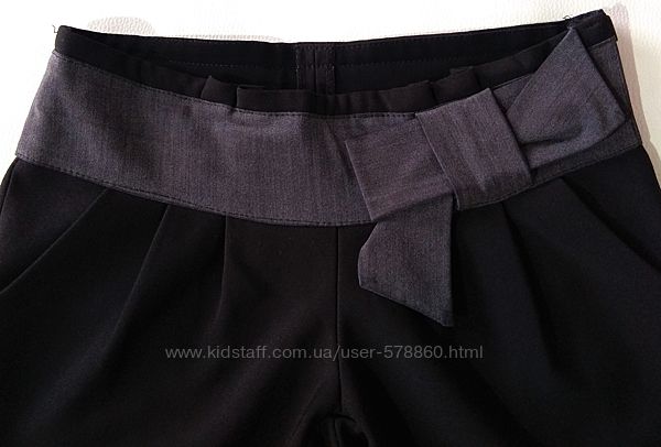 Чорні штани з сірим поясом і бантом у розмірі S.Стан нормальний.