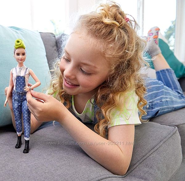 Подробное описание: Кукла Барби Модница с зеленым ирокезом в джинсовом комбинезоне Barbie Fashi