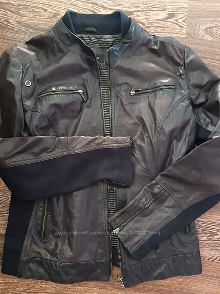 продам кожаную куртку со вставками из ткани, декор из кнопочек и молний.модель идет по фигуре, стильная ,красивая куртка.