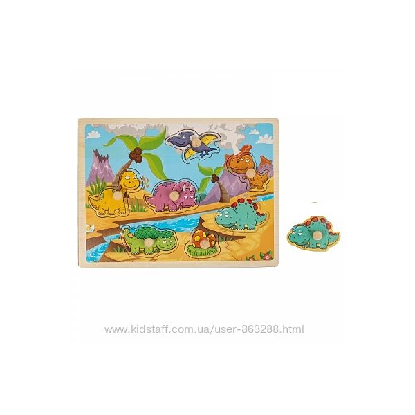 Подробное описание: Вкладыши динозавры деревянные с ручкой