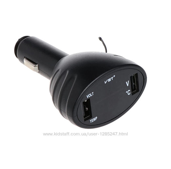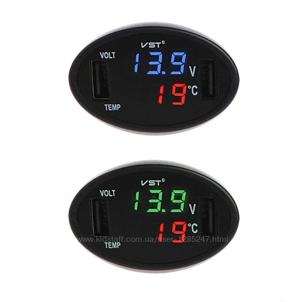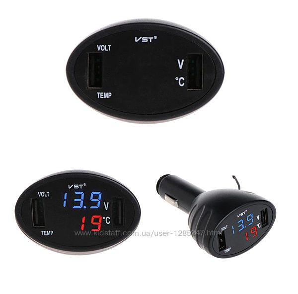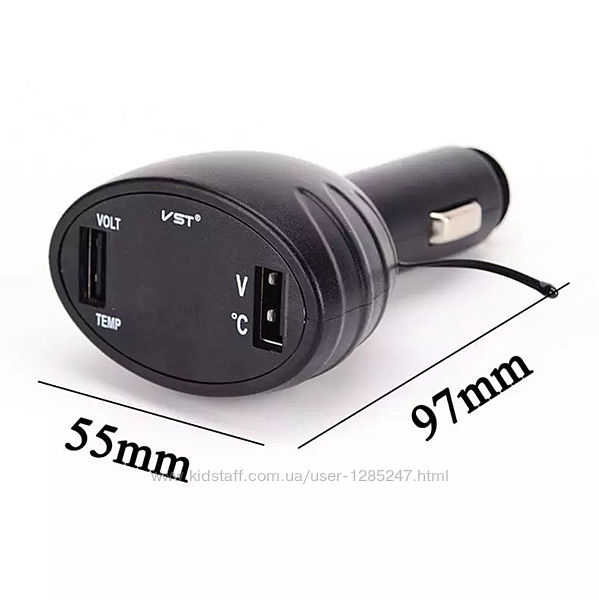 Электронный цифровой вольтметр + термометр с двумя портами USB для зарядки мобильных устройств, предназначен для установки в автомобильный прикуриватель с напряжением бортовой сети 12-24 В. Цвета дисплея: зеленый + красным; синий + краснымУстройство обладает высокой точностью измерения. Датчик температуры салона - выносной, находится снаружи устройства. Данный тестер позволит быстро узнать о состоянии аккумулятора и генератора.