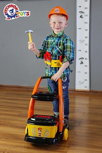 Набір інструментів ТехноК на возику з колесами, арт. 6511 Іграшковий «Набір інструментів ТехноК» - справжня знахідка для юного майстра.Тепер обладнання можна підвезти на возику і відразу приступати до роботи.