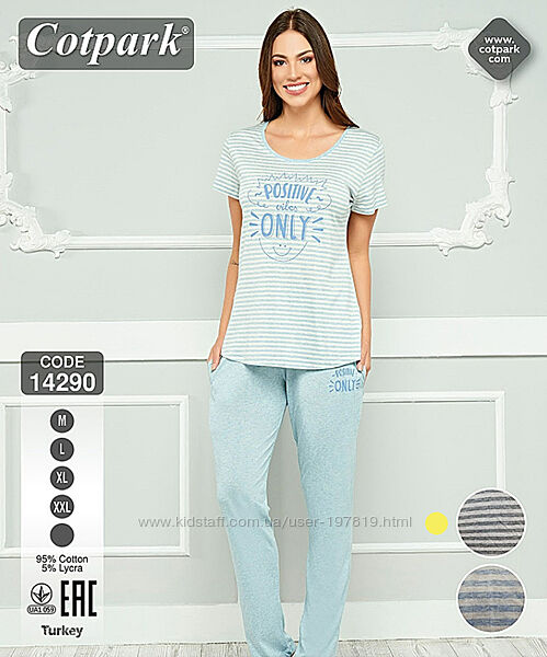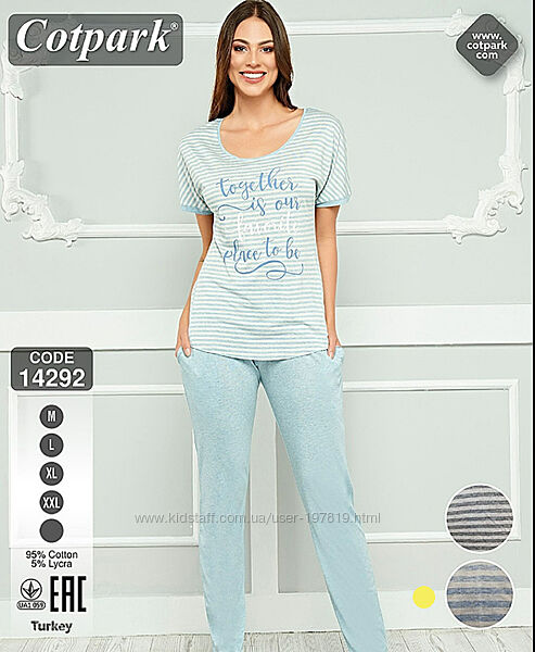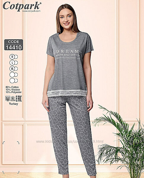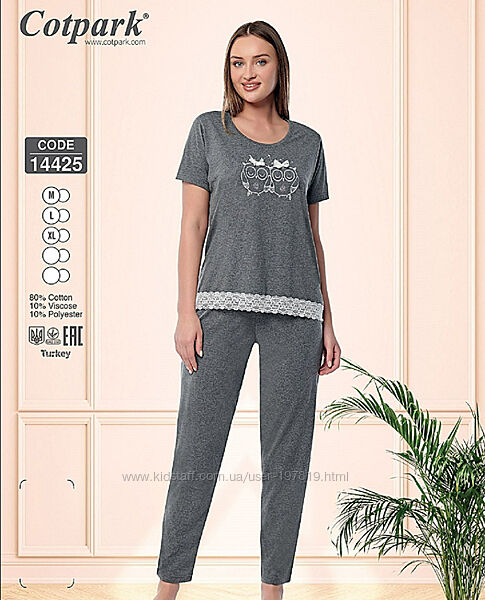 Подробное описание: Пижама женская турецкая S-3XL ТМ Cotpark. Пижама, женский домашний костюм.