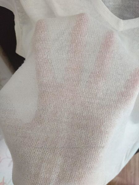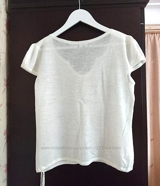 Очень красивая и стильная футболка. Немного просвещается, не сильно!Одевала её 1 раз, состояние новой вещи.