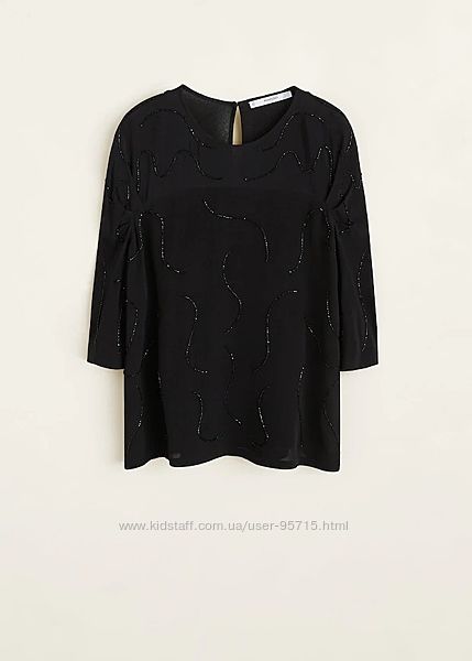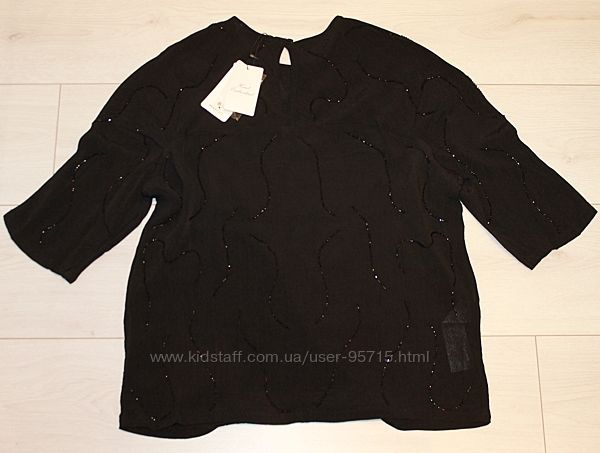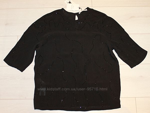 ОПИСАНИЕ Шифон. Декоративные бусинки. Рукава три четверти. Сзади застежка в форме слезы.СОСТАВ - 100% вискоза. Аппликация: 100% стекло