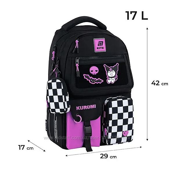 Трендова молодіжна модель – популярний хіт стріт-стайлу та яскрава зірка шкільних коридорів! Сміливий та яскравий дизайн в найулюбленішій ліцензії дівчат Kuromi допоможе навчатися із особливим задоволенням, з рюкзаком своєї мрії на плечах.