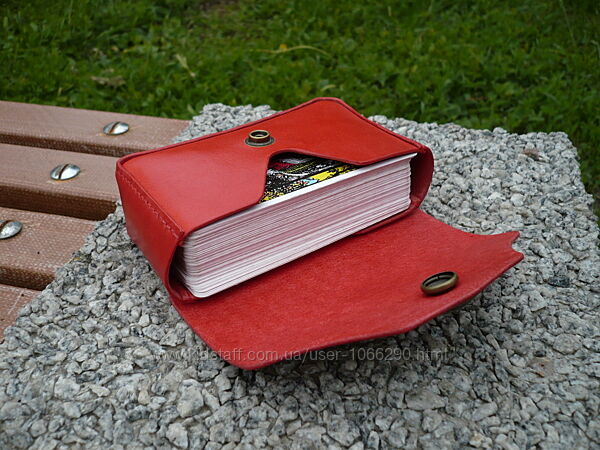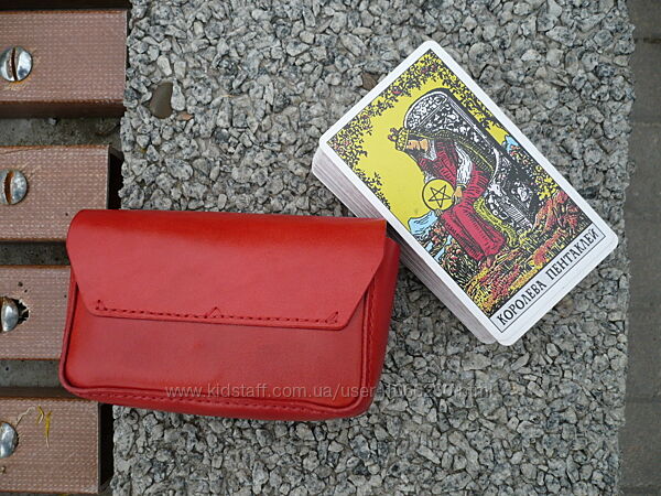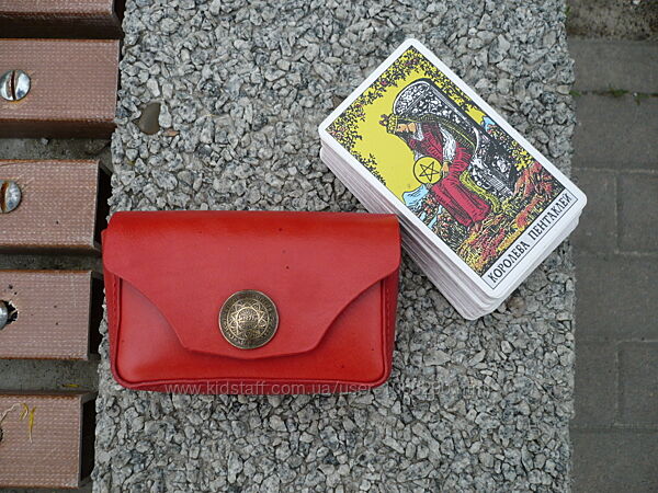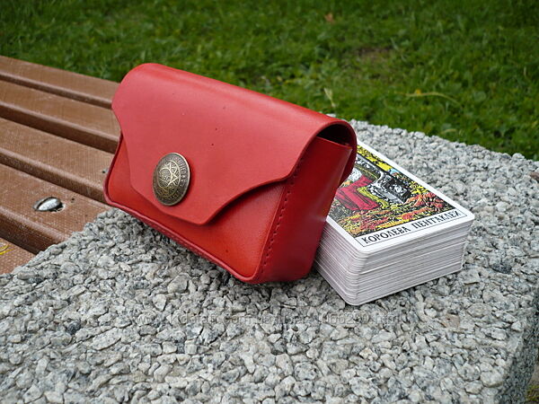 Кожаный чехол для карт таро. Кожа растительного дубления с матовой лицевой поверхностью производства Италии, цвет коралловый. Чехол прошит вощеной нитью, урезы обработаны средством tokonole (Япония). Финишное покрытие - крем kenda farben antiqua super ( Италия ). Размер: 130*75*40 мм ( под бревно размером 120*70*35 мм). Кнопка сделана из марокканской монеты. Ручная работа. Ценность: 650 грн.