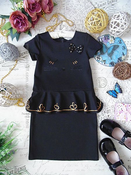 Бомбезное чёрное платьеце с баской H&M на 8-10лет,рост 128-140 см