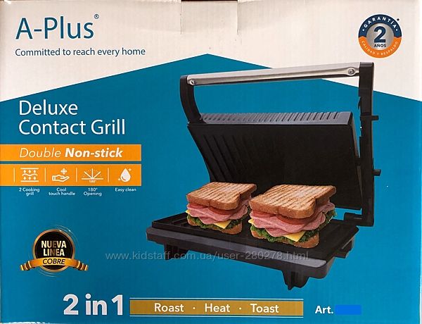 В данной модели, мощностью в 750 Вт, используется закрытый нагревательный элемент система блокировки крышки и надежное антипригарное покрытие