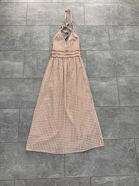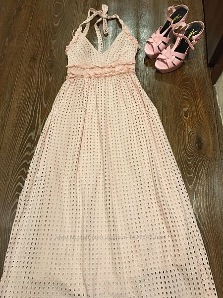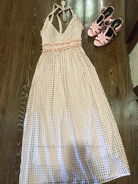 Превосходное натуральное платье макси нежно пудренного цвета Topshop