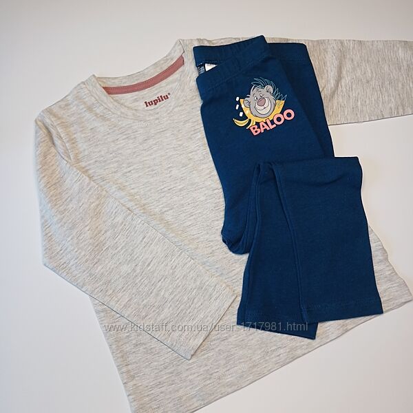 Детская пижама от немецкого бренда Lupilu® состоит из трикотажной кофты и штанов. Комплект изготовлен из качественных тканей, выдерживающих многократные стирки. Изделие не теряет яркость красок и и сохраняет форму в процессе эксплуатации.