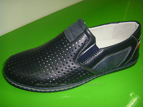 ф. 3 СИНИЕ Перфорированные мокасины с круглым носочком. Верх эко кожа, внутренняя часть - натуральная кожа.