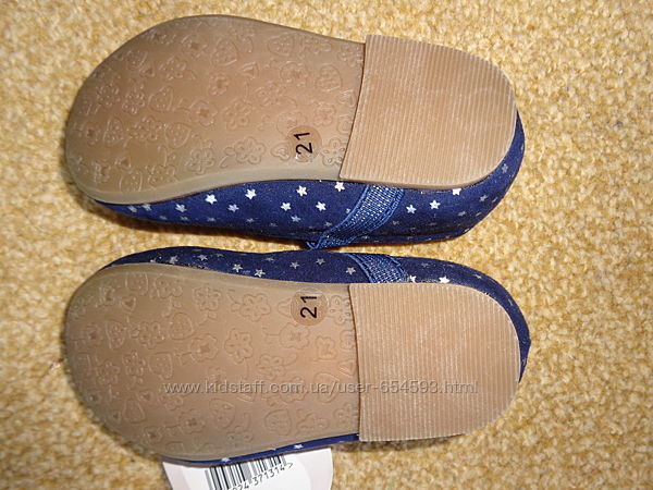Крохотные туфельки George с такими же керохотными серебристыми звездочками ! Текстиль ,напоминающий гладкую замшу ! Бантик - на резиночке ! Длина по стельке - 12,5 см ! Возврат не предусмотрен !