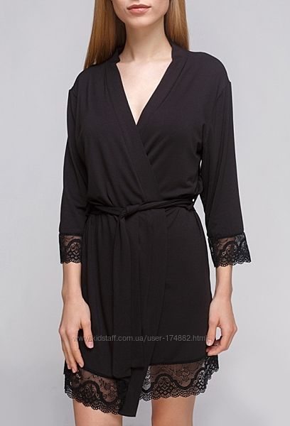 Подробное описание: Serenade 5500 Чорний халат віскоза з мереживом