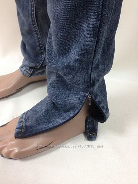 Длина 105 см, ширина в поясе 34 см, ширина штанины внизу 13 см.