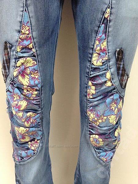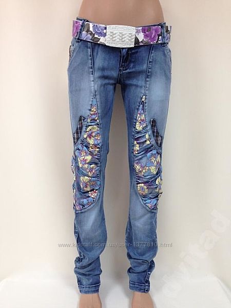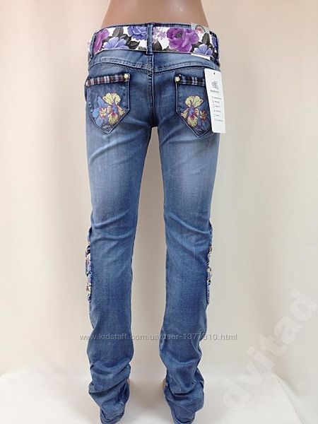 Джинсы женские, весна/осень.Размер 26, плотная ткань, украшены цветочными вставками. Смотрите замеры.