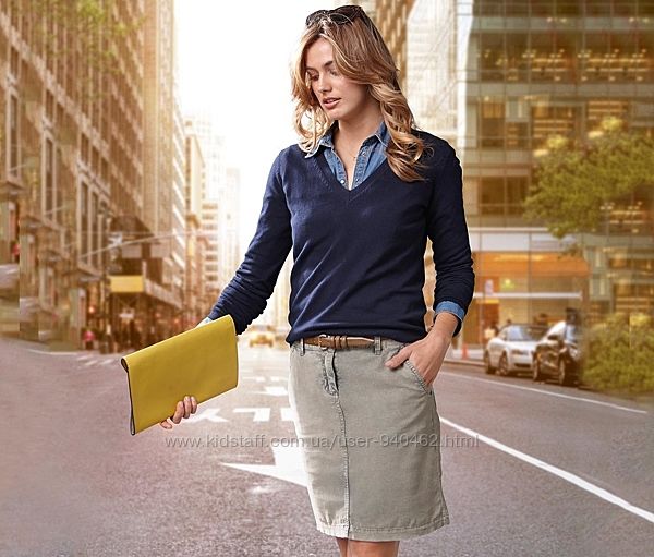 Женская качественная юбка от Tchibo(Германия), выполненная из мягкого, эластичного, вельветового материала. Имеет классический разрез сзади. У изделия два прорезных кармана спереди и два накладных сзади, все карманы функциональны. Благодаря эластану материал устойчив к загрязнению, не мнется, обеспечивает высокий комфорт при носке. Разделение швов спереди и сзади подчеркивает женский силуэт. Юбка застегивается на молнию спереди, а также имеет пояс с петлями для ремня, посадка средняя.Удобная, практичная юбка из микровельвета