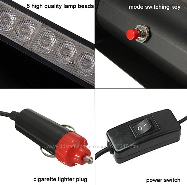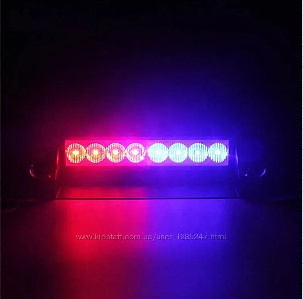 На моргание фарами не реагируют? Не пропускают? В левом ряду медленно ползут? Хотите приоритет на дороге?Яркий светодиодный полицейский стробоскоп - мигалка сине-красного цвета крепится под лобовое стекло на четыре присоски. Данный портативный спец сигнал имеет 8 ярких светодиодов, свет от которых виден даже днем.