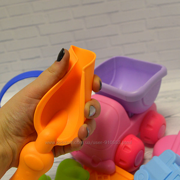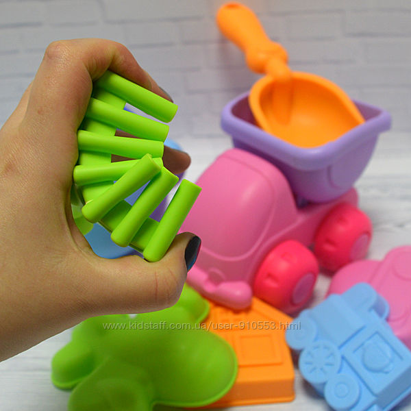 Когда пригревает весеннее солнышко, наборы для песка и воды поселяются надолго в песочнице вместе с детским смехом. Для веселых игр в песочнице не обойтись без самых важных инструментов. Набор для игры с песком из 8 единиц создан специально для маленьких деток. Детские леечки и машинка грузовик для песка выполнены из мягкого материала. Благодаря обтекаемым формам силиконового набора для песочницы полностью исключен риск травмирования. В комплекте представлены элементы, без которых не обойтись во время игр в песочнице: пасочки, леечка, машинка, лопатка и грабельки. Благодаря им увлекательные игры обеспечены. Неспешно играя с песком, даже самые активные детки становятся более спокойными, внимательными и усидчивыми. В увлекательной игровой форме у них развивается мелкая моторика рук и координация движений. Когда ребенок определяет, сколько ему необходимо песка для создания фигурки, у него развивается глазомер.Возраст : от 3 лет