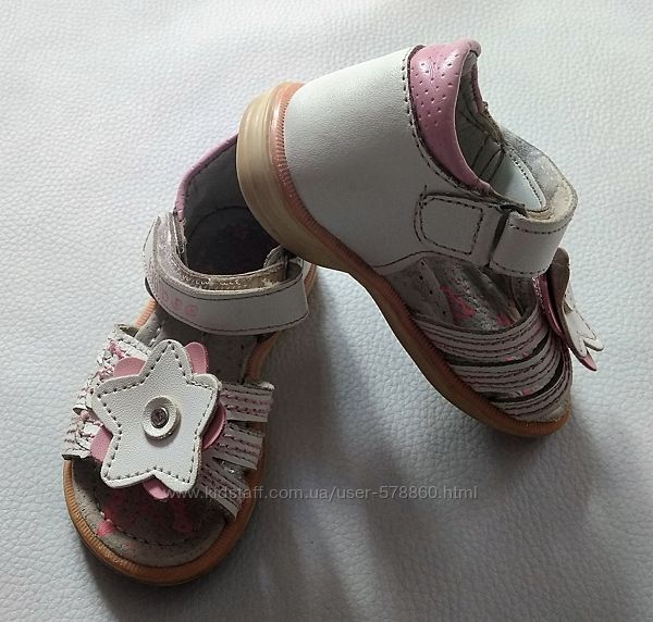 Біло-рожеві босоніжки Clibee для дівчинки в розмірі 20.Стан відмінний. Немає ні потертостей, ні якихось дефектів.