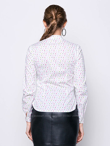 Рубашка приталенного силуэта, длинный рукав, длина до середины бедра, комбинируется с юбками, брюками, джинсами. Цвет пломбир Ткань бенгалин, стрейчевая Состав 90 % хлопок 10 % полиэстер Растяжимость низкая (до 2см) Воротник отложной Рукав длинный Застежка пуговицы Особенность с воротником Параметры длина 42-46р. - 60см,
