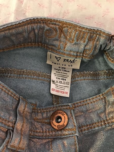 Джинсы с золотистым напылением, очень красивые. По бирке 8 лет, нам при росте 134 уже малы. Замеры: общ длина 73см, шаг 56см, ПОБ 35см, талия с утяжкой. Доставка НП или Укрпочтой за счёт получателя.Другие объявления продавца