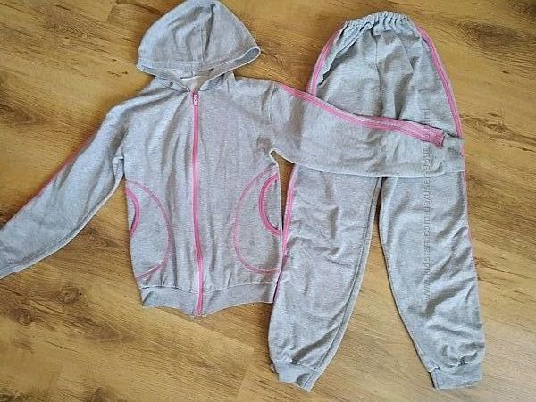 Костюм спортивный р. 140 АвексТекс Украина. Отлично подойдёт как домашний костюм. В хорошем состоянии без пятен и дыр. Пошит из трикотажного полотна "футер", которое обладает хорошими теплоизолирующими свойствами. Материал мягкий и приятный к телу. Длина кофты 54см., Длина рукава 49см.Штаны 83см, шаг 63см.