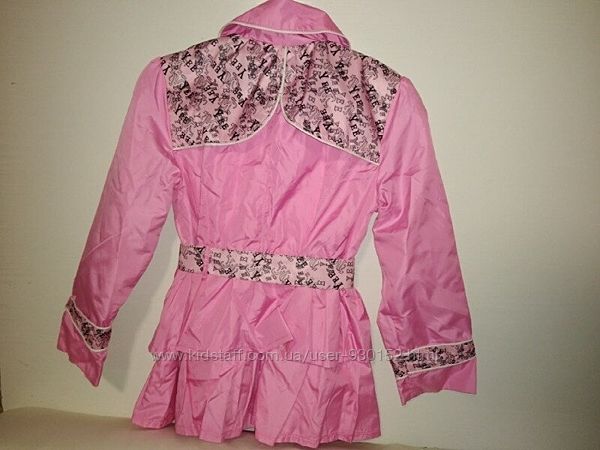 ПЛАЩИК ДЛЯ МАЛЕНЬКИХ МОДНИЦЬ !!! Залишився останній розмір-32. Верх якісна плащівка з принтованою обробкою і білим кантом,якісна і яскрава трикотажна підкладка! під поясок. два яруси рюшів!!! кишеньки під першою рюшів! Комір відкладний на стійці ,на поличці і спинці-кокетки відлітні, однобортний - на барвистих гудзиках! На рукавах погончики.