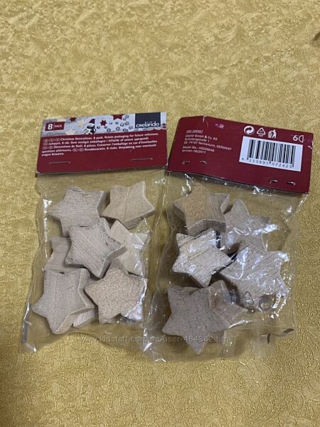 Новорічний декор тм «Crelando ». Можна прикріпити двохсторонній скотч і буде як оздоба або матеріал для хенд-мейд. Упаковка з 8 шт. Ціна 10 грн/упаковка.. З дерева зірки та ялинки (2 вида в наявності).