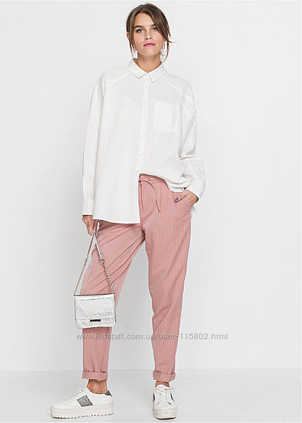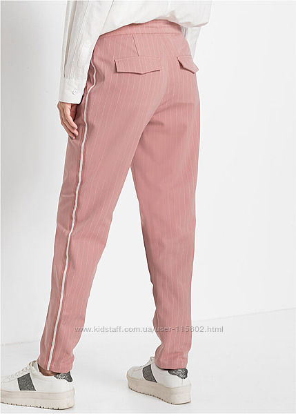 Штани з лампасами з костюмної тканини в тонку смужку з сайту bonprix нові колір стримано-рожевий
