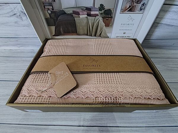 Вафельные простыни пике с кружевом евро размер ТМ Favorite