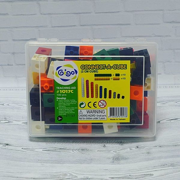 Специалисты компании Gigo знают, как обучить достигшего трехлетнего возраста ребенка арифметическим приемам в игровой форме, и создали отличный набор «Занимательные кубики». Каждый кубик изготовлен из прочного пластика высокого качества и достигает размера два сантиметра кубических. Набор от Gigo состоит из ста разноцветных кубиков, которые можно без труда соединять между собой. Они дают возможность развивать у малыша навыки счета от одного до ста, счета десятками и сортировки по цветам. С кубиками ребенок наглядно учится сложению и вычитанию в пределах до ста. В процессе обучения развиваются внимание, воображение, логика, память, мышление, цветовое восприятие, а также мелкая моторика и координация движений.Возраст : от 3 лет