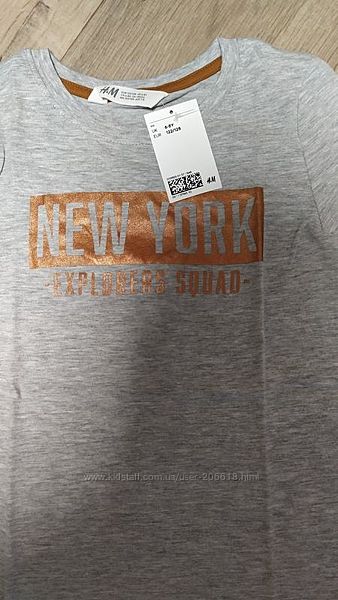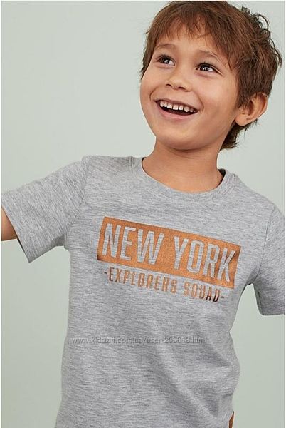 В наличии классная футболка Н&М для мальчиков !Серый цвет, украшена золотым принтом, с надписью New York.