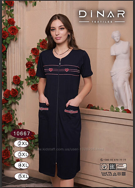 Широкий асортимент літніх халатів гарної якості. Є на ґудзиках та на замку.Розміри: 46 - 64
