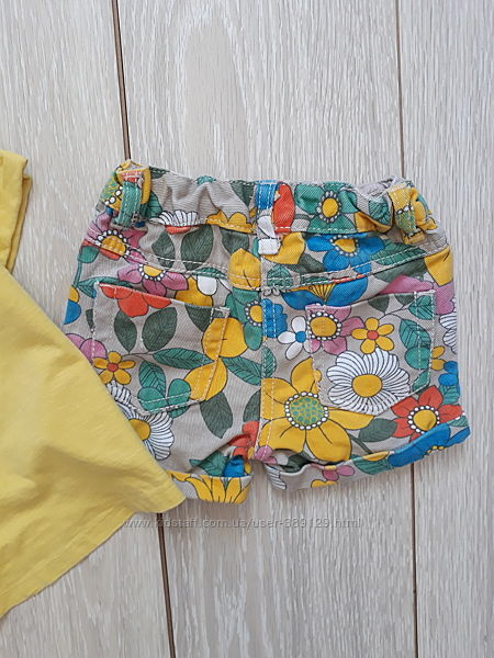 Яркие шорты на 12-18 мес из коллекции 2015г. Застёгиваются на кнопочку, есть утяжка. Состав 100% хлопок. Состояние очень хорошее, есть нюанс(фото) на карманчике попы, в носке совершенно не видно