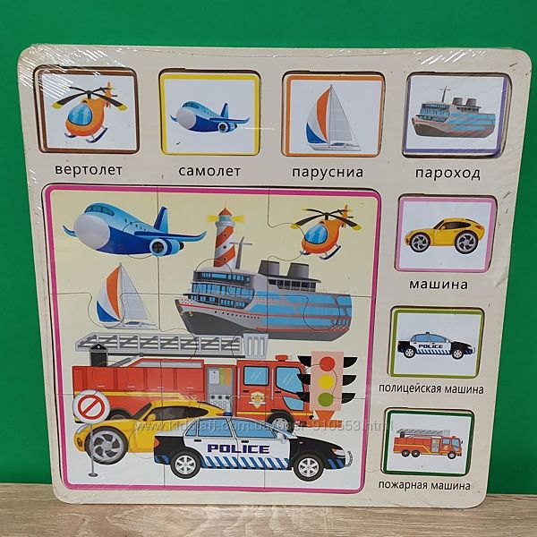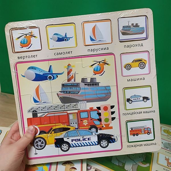 Деревянные пазлы фрукты, овощи, транспорт, животные